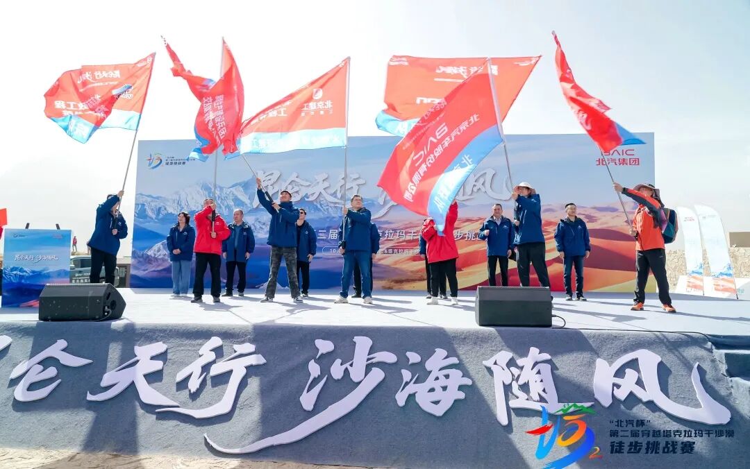 昆侖山下天朗氣清,旌旗獵獵。10月3日,由新疆生產建設兵團第十四師昆玉市牽頭,聯合和田地區行政公署、北京市援疆和田指揮部等共同主辦的“北汽杯”第二屆穿越塔克拉瑪干沙漠徒步挑戰賽出征儀式在和田隆重舉行,400余名來自全國各地的參賽選手集結在此,向廣漠沙海發起挑戰。北汽集團獨家冠名贊助本屆徒步挑戰賽,旗下北京越野、北汽福田、北汽極狐、享界汽車的全系自主產品融入豐富的賽道場景,50余輛核心產品全程服務保障賽事,助力文化潤疆、文旅興疆,為建設社會主義現代化新疆貢獻力量。