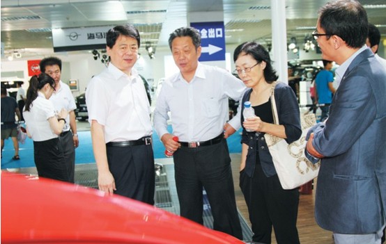 北汽集團副總經(jīng)理張健出席13 日上午舉行的長春汽博會開館式,并陪同中國汽車工程學(xué)會常務(wù)副理事長兼秘書長付于武等汽車行業(yè)、企業(yè)領(lǐng)導(dǎo)參觀北汽展臺(右圖)。
