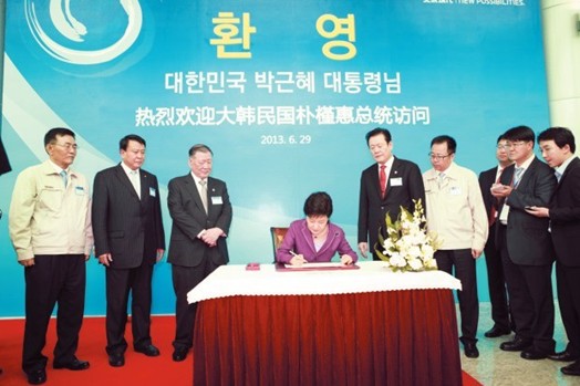 6月29日,在中國訪問的韓國總統(tǒng)樸槿惠專程來到北京現代進行考察。她對北京現代所取得的成就給予了高度評價,期待在未來發(fā)展中,北京現代繼續(xù)為中韓兩國經貿關系的發(fā)展做出卓越貢獻。