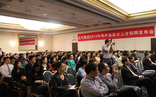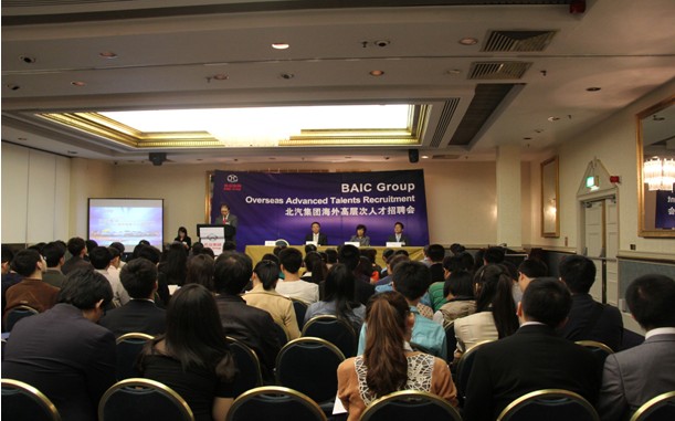 2013年6月22日, 北汽集團海外(英國)高層次人才招聘發布會在英國倫敦成功舉辦。北京汽車集團有限公司黨委副書記李志立,黨委常委、組織部部長兼人力資源部部長高原,中國駐英國大使館一等秘書、留學生管理中心主任閆麗、全英學聯主席孟德建等領導出席了招聘發布會。本次北汽集團招聘會共在英國倫敦、謝菲爾德、伯明翰三地舉辦,共吸引400多名優秀人才到場應聘,在英國引起了強烈反響。